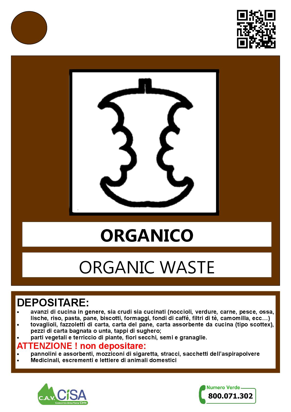 Il Consorzio provvede allo svuotamento dei contenitori con indicazione “raccolta differenziata rifiuti organici” o similare di colore marrone esposti dall’utenza all’esterno delle abitazioni, sulle pubbliche vie o strade ad uso pubblico ed anche private ma soggette ad uso pubblico. Il rifiuto deve essere conferito nei contenitori mediante l’utilizzo di sacchetti compostabili.
