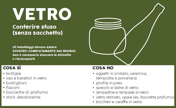 Il vetro va conferito sfuso (senza sacchetto) nell'apposito contenitore.